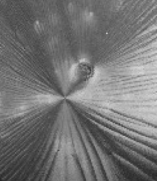 Im Gegensatz dazu bilden sich in der durch den Eneraktiv informierten Lösung ideal augebildete (einachsige) Kristalle mit einem klaren, punktförmigen Zentrum, von dem radiale Strahlen abgehen. Ebenso sieht man ein Polarisationskreuz. Die kristalltypischen Interferenzfarben sprechen für eine ideal zusammenhängende Kristallstruktur